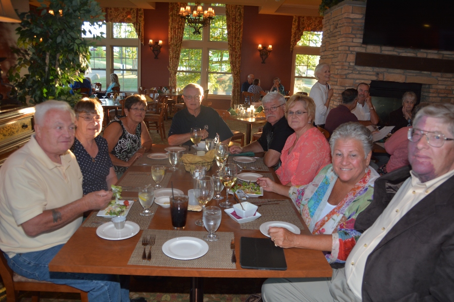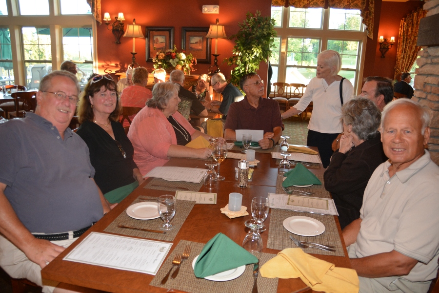Friday eve meet and greet at Champion Hills Country Club. Thanks to Lane Boughton for coordinating a wonderful evening. The club house is beautiful, the staff welcoming, the food was great and the music group enjoyable. From left to right – Bill Reeser, Barb Grevell Herman, Donna Toomey Moyer, Chuck and Olivia Shoemaker.