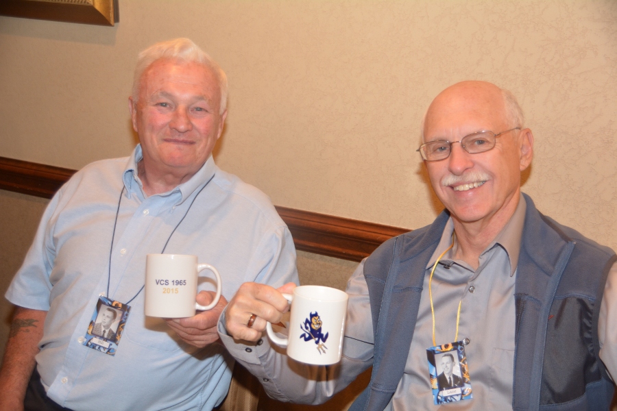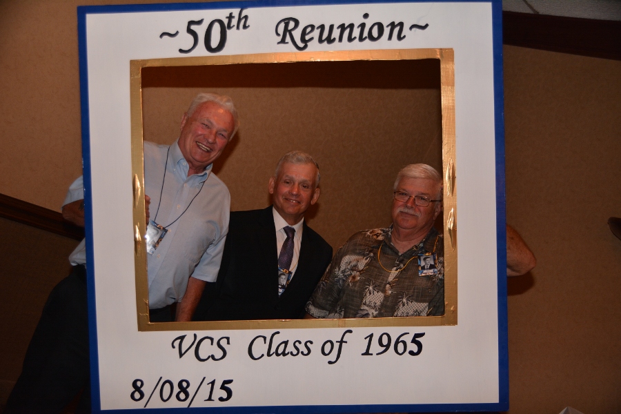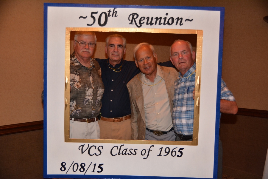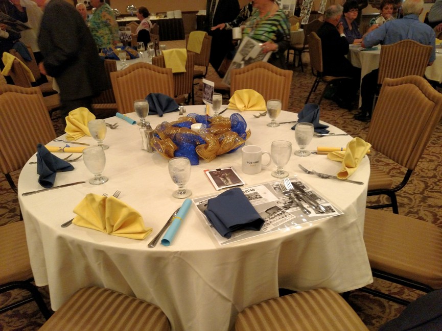 Thanks to the committee for the blue and gold napkins, flowers, wreaths, candles, balloons, posters, 60’s music, etc. Thanks to Al Pezzimenti for the place mats with memories of our days at VCS, and thanks to Barb Grevell Herman, Bill Reeser, and Bob Montgomery for the VCS 1965 Blue Devil coffee cups.