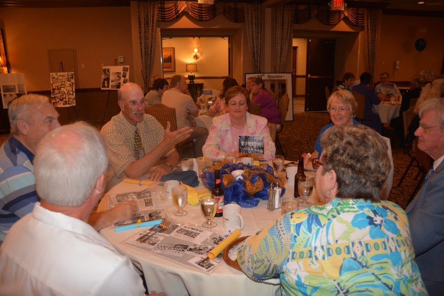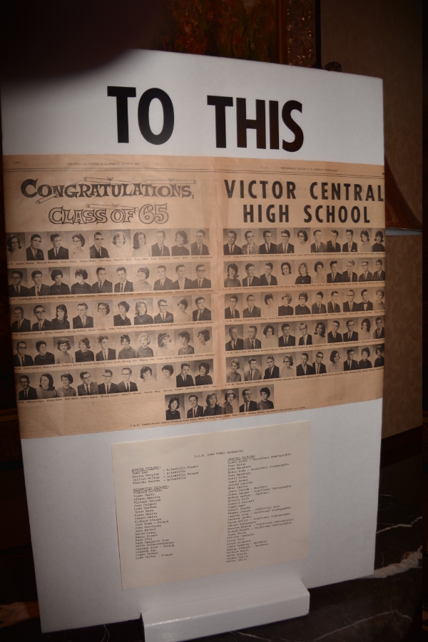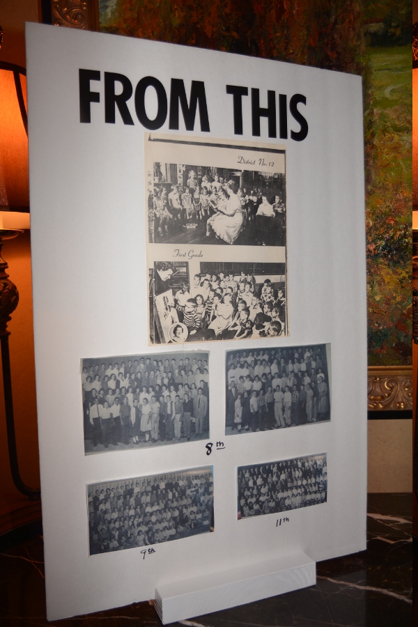 Luann showed us the kindergarten photos from the 1953 yearbook and pointed out that 45 of the original 83 students who started together in 1952 had graduated together on June 28, 1965 – and that 30 were here tonight for the 50th reunion.