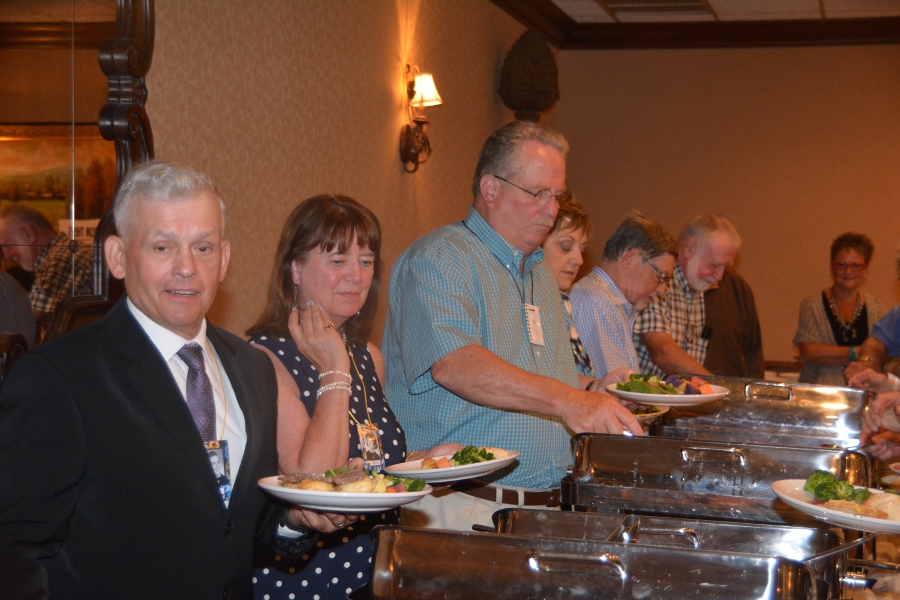 After dinner, Albert Pezzimenti entertained with a “memories of our days at VCS” trivia game, and awarded one of several Victor Insulator coffee mugs to Susan Peck for guessing the right answer to one of the questions