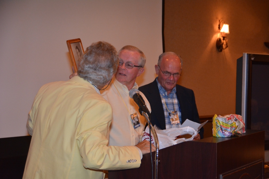 Albert, Roger Barry and John Morrissey were the MC’s after dinner. John asked the classmates to stand up in a survey about our lives since graduation. Roger showed photos from the website of the classmates who could not attend the reunion but had sent in a bio for our class website. Many thanks to John Bay for setting up the website and for displaying these photos from our fiftieth reunion. 71 of the remaining 92 classmates had sent in a bio describing their life since graduation.