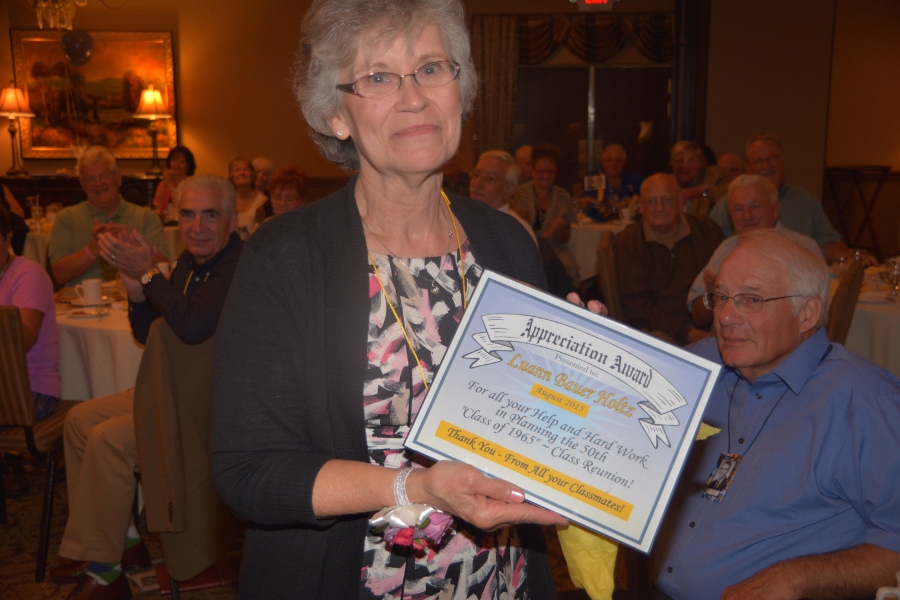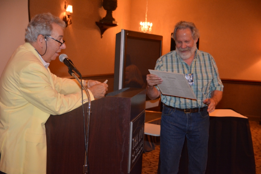 Albert awarded a LI’L ABNER vinyl LP to Dick Smith for playing the lead as Li’l Abner in the musical presented by Victor Central School on March 26 and 27, 1965